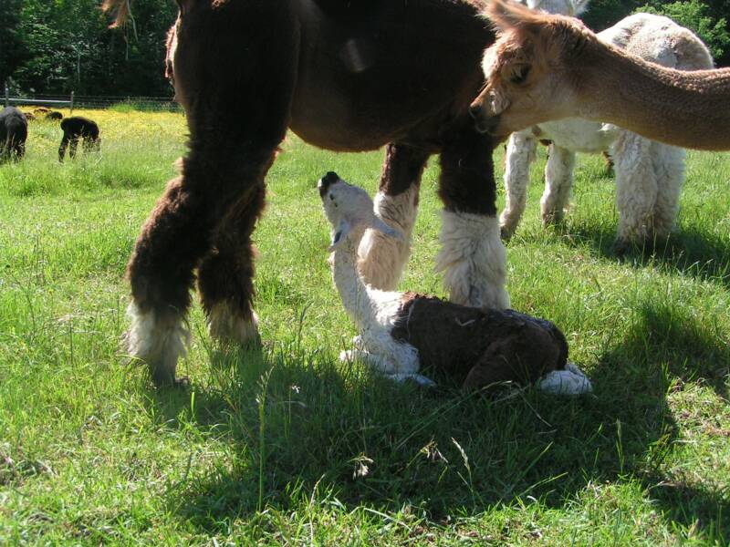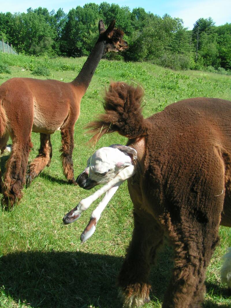 This little girl, is Co-owned by Lisa Cadieux of Wit's End Farm Alpacas and Candyce Carlon of Eye Candy Alpacas. Her name is Salt Water Taffy! Thanks to both of you for letting us post this birth.